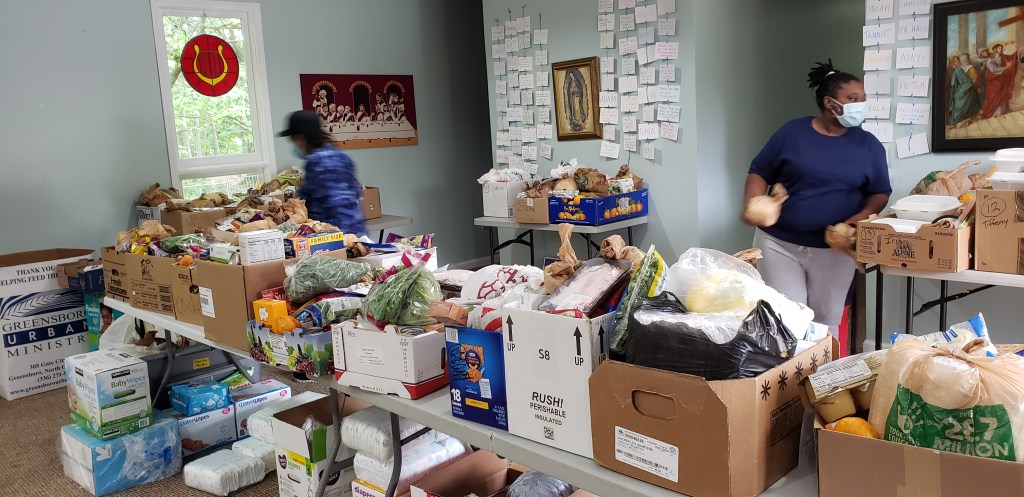 When COVID 19 hit, I got a call from a White parishioner at a relatively large congregation in Greensboro. “What can I do to help?” she asked. She has since been a central member of our ministry that delivers meals and groceries to almost 200 people every week and has transformed the sanctuary of Holy Spirit Episcopal Church into a food pantry, consecrating groceries and the people who take them out into the community.
